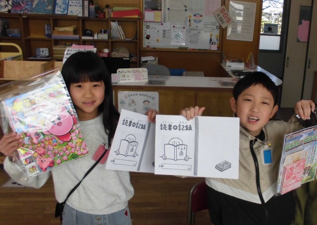 1年間を通して多くの本を借りた子に、多読賞の表彰を行いました。
