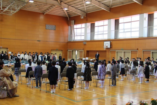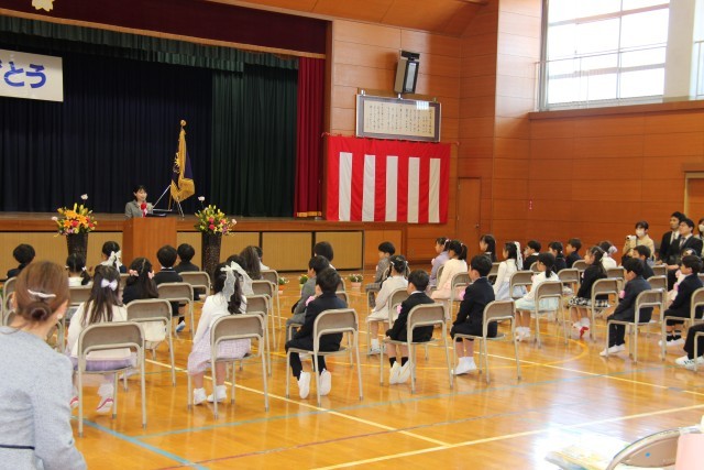 式辞では、みんなと仲良くなるために、また賢くなるように、「あいさつ」「よく聞く」ことを大事にしましょうという話をしました。