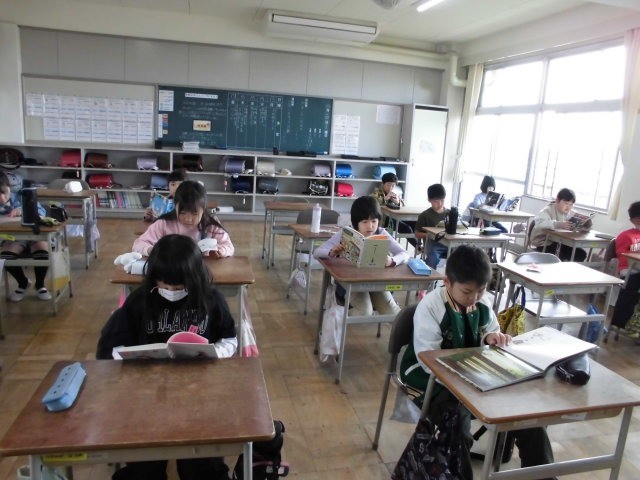 すべて終わると読書を始めます。高学年の教室では、誰もいないかと思ったほど静かでした。