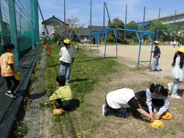 チョウを見つけた子もいます。春です。