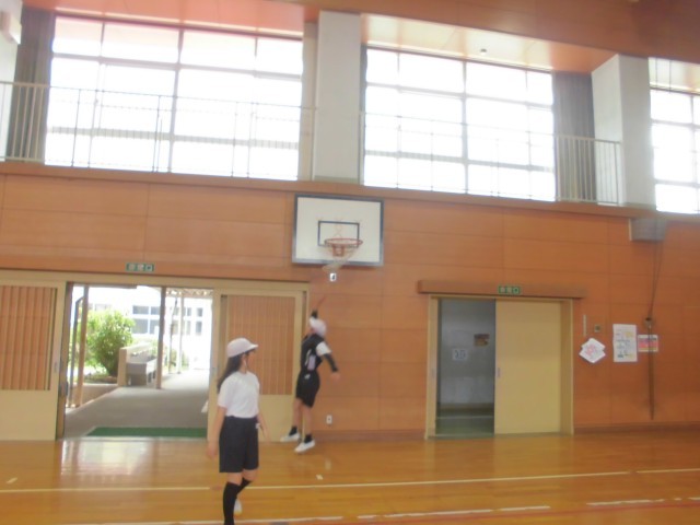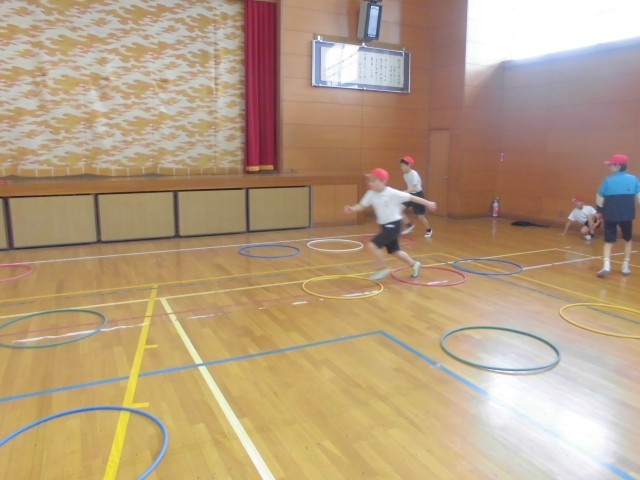 6年生の初めての体育を行いました。走り幅跳びに必要な動きをサーキット形式で練習しました。