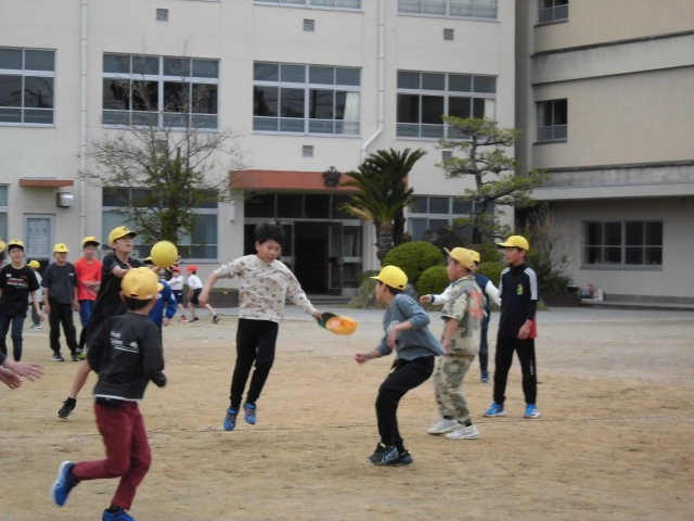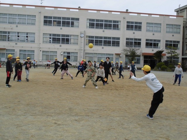 休み時間には、とてもおおぜいの子が運動場で遊んでいます。