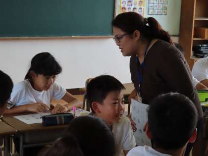 「I went to 〜」を使って、どこに行ったのかを発表することができました。