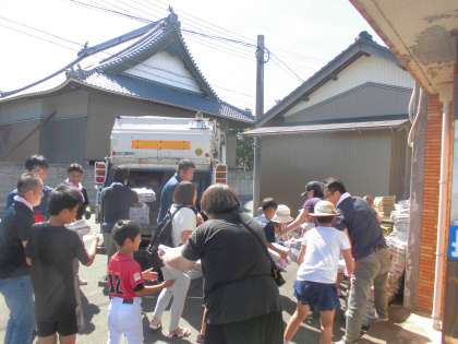 子どもたちもバケツリレーに加わり、お手伝いをする姿が見られました。