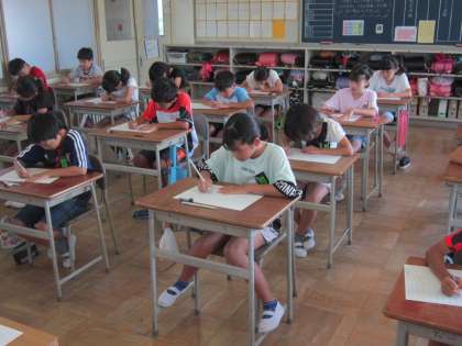 夏休みの課題として取り組んだ漢字練習で、どれだけ定着したかをテストしました。学習したことを忘れないように、こまめに復習するといいですね。