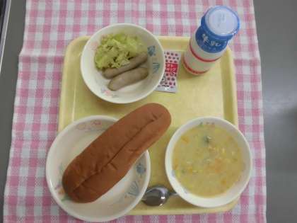 ホットドッグ・牛乳・豆乳コーンポタージュ