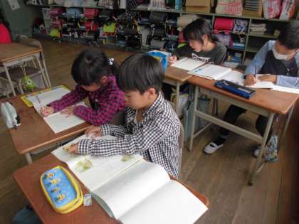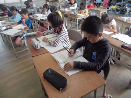 今日は「お手紙」を読み、二人がどんな話をしたのかを確認しました。教科書に印をつけながら、丁寧に読みました。