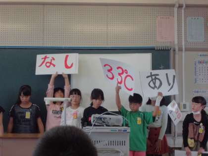 学習発表会に向けて、練習をしています。4年生のテーマは「環境」です。学んできたことを、分かりやすく伝えられるように意識をして練数をしています。