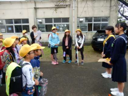 今日もあいさつ運動の日です。尾西第二中学校の生徒会が校門に立ってあいさつをしてくれました。その後は登校してきた2年生と5年生の子たちも加わりました。