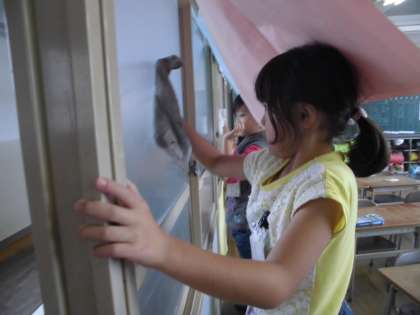 いつもの掃除が終わったら、他に掃除できるところはないかを探し、自発的に教室をきれいにしました。