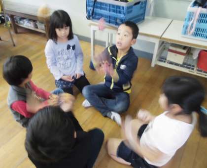 休み時間には、友達同士で声をかけあい、むかしあそびの練習をしています。