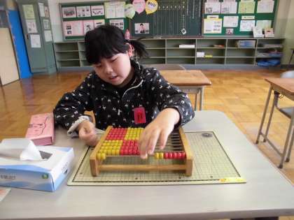 百玉そろばんを使って数を数えました。また、カードを使って数える学習もしました。