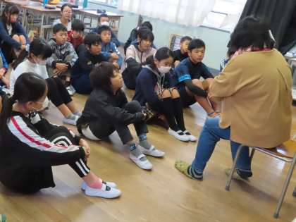 1組、2組のどちらの学級も真剣に話を聞いていました。