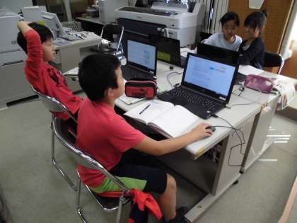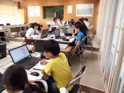 理科では流れる水のはたらきの学習と関連して、洪水にそなえる工夫にはどんなものがあるのか、パソコンで調べ学習を行いました。