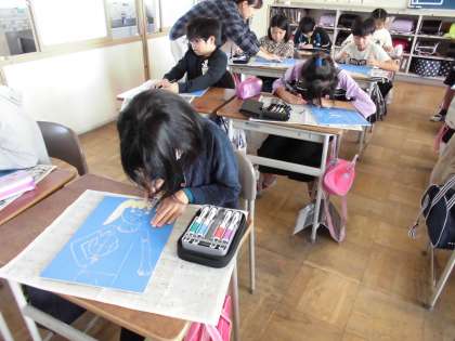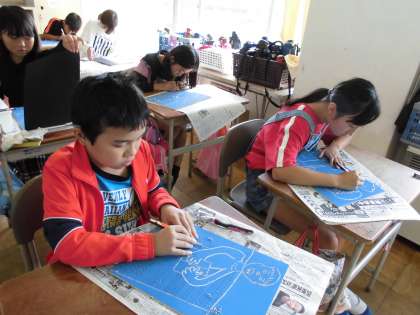 10月31日(木)5年生 版画制作中
