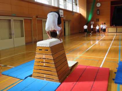 体育では、跳び箱に取り組んでいます。