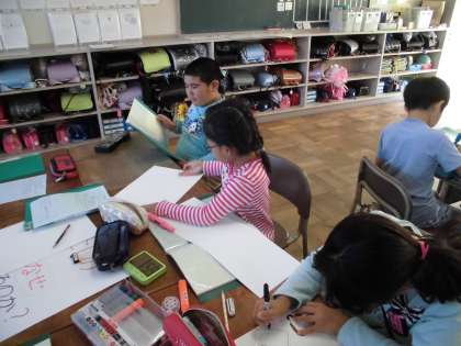 総合の時間に、学習発表に向けての準備をしました。台本を読む練習をしました。