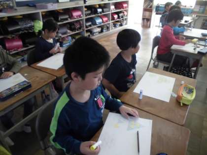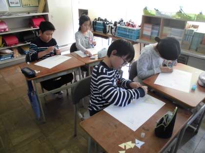 正三角形と二等辺三角形を規則正しく並べて模様を作りました。