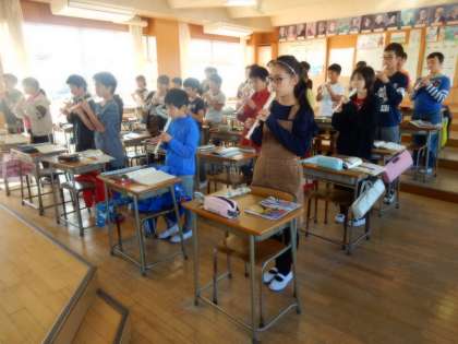 今日の6年生の音楽の授業では、歌やリコーダーや鍵盤ハーモニカでいろいろな曲を演奏しました。特に歌唱では「宝島」という曲では、冒険に出かけるワクワクする気持ちを高らかに歌い上げました。