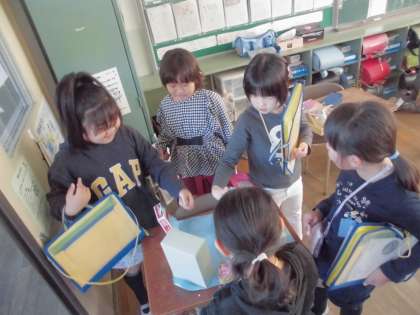 今日は、「ともだちハウス」の鑑賞会を行いました。友達の作った作品の良い所を見つけたり、自分の作品のひみつを嬉しそうに話したりする子どもたちの姿が印象てきでした。