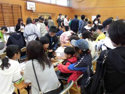 実際に点字機の使い方を教えながら、たくさんの人に体験してもらいました。