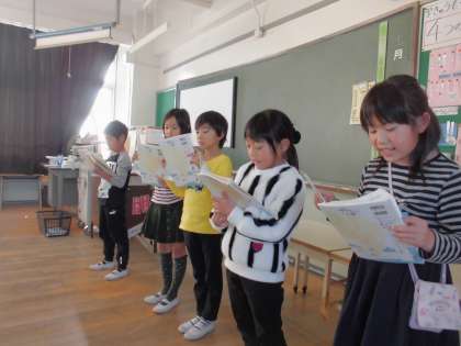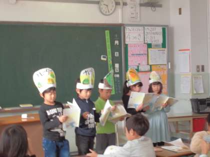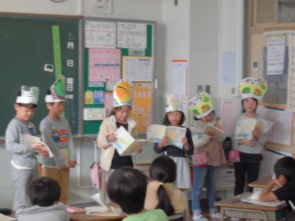 国語の時間は、「お手紙」の音読の練習を進めています。グループで役割を決め、発表会にむけて練習しています。