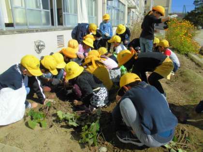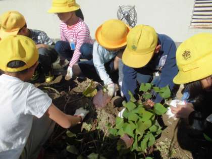 子どもたちは楽しそうに一生懸命、サツマイモを掘ることができました。