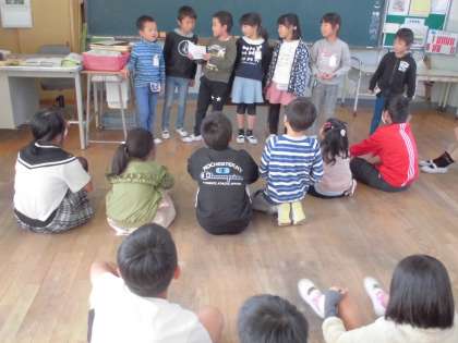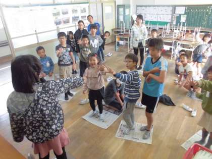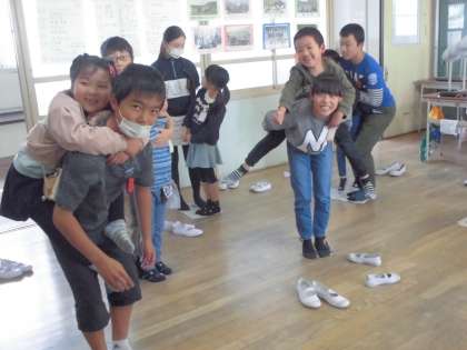 1年生が考えたルールやリーダーのもと、楽しく交流できました。小さくなって乗れなくなったときに、1年生をおんぶする姿がとても頼もしかったです。