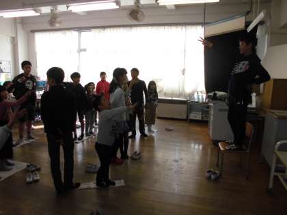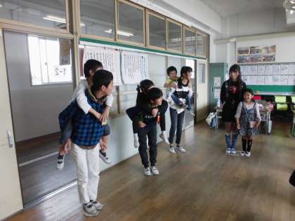 新聞が小さくなってくると、ペアで手をつなぎ合ったり、おんぶをしたりして、微笑ましい雰囲気に包まれました。
