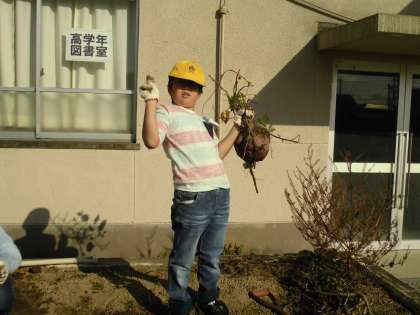 今日の生単の時間に、サツマイモの収穫をしました。よく育っていて、とても大きなサツマイモがたくさん収穫できました。