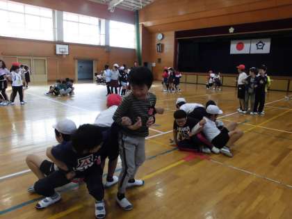 学級委員が、遊びの紹介をして仲良く遊べました。