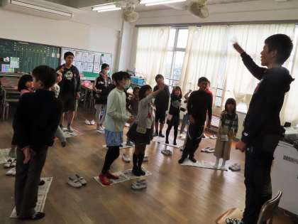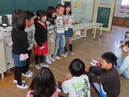 新聞乗りゲームをして、楽しく1年生と交流することができました。