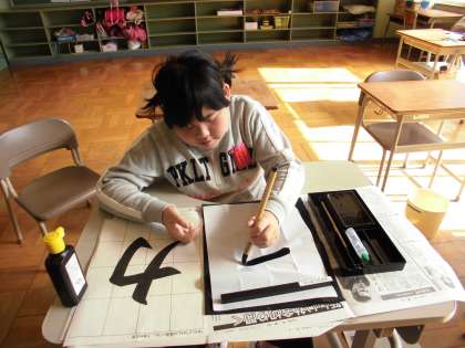 書写の時間に毛筆の練習をしました。今回は「力」という字を書きました。