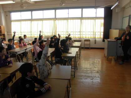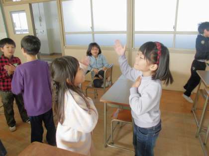 今日は、ALTの先生による英語の授業がありました。元気よく、英語の歌を歌い、クイズやアニマル・バスケットを楽しみました。