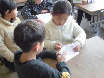 今週、さつまいもパーティーをひらきます。今日は、1年生の子どもたちに招待状を持って行きました。国語の時間に学習した仕掛けカードを利用し、心をこめて作りました。喜んでもらえたようで、嬉しそうにしていました。