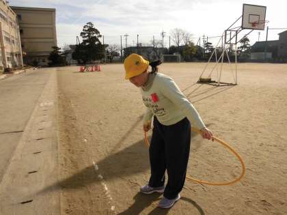1時間目の生単の時間に運動場でランニングをしたり、フープの後になわとびの練習をしたりしました。