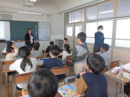 今日は、「数」、「アルファベット」、「色」、「形」の英語の発音の練習をしました。歌を歌い楽しく学習しました。