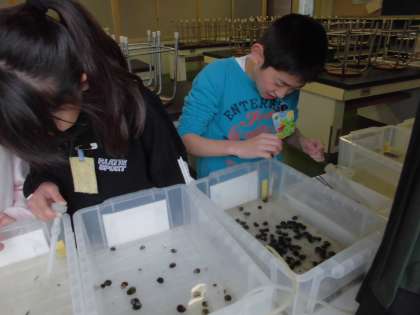 休み時間に毎日ホタルの様子を観察しています。明地ホタルの会の方から世話の仕方の説明を受けてから今まで、毎日世話をしてきました。小さかったホタルも大きくなってきました。成長を見ると嬉しくなります。
