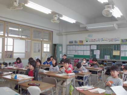 国語の学習では、便利な物や道具を考え、発表を行いました。絵を見せながら、聞きやすい声で発表したり、質問したりしました。発表を聞きながら、友達の良い所をたくさん見つけました。