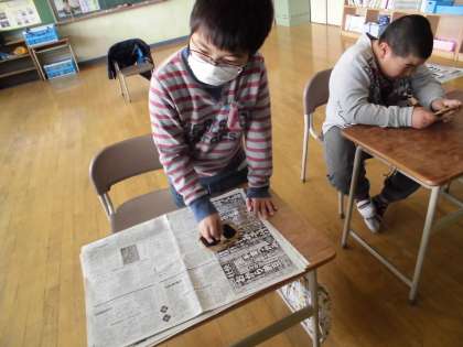 版画を作りました。濡らした紙を版に置いて、しっかりこすりました。