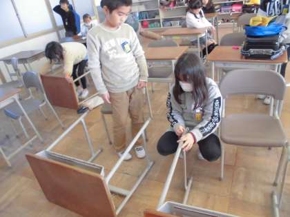 今日は2学期最後の日です。一人ひとりお世話になった机やいすを綺麗に掃除しました。感謝の気持ちを込めて丁寧に行いました。
