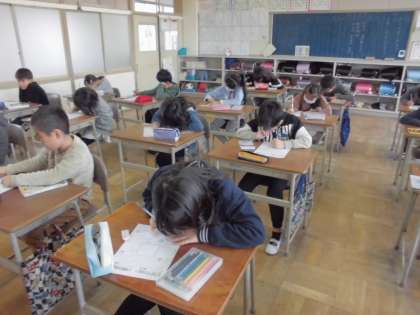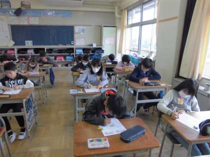 始業式での姿勢よく話を聞く姿に、3学期の意気込みが伝わってきます。