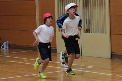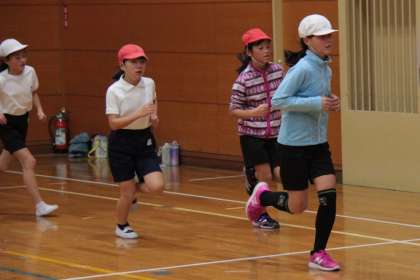 あいにく、運動場の状態や天候が悪く、屋内での練習になりましたが、一生懸命走りました。
