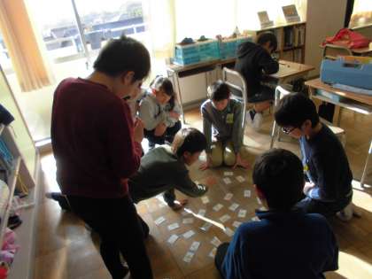 今日はあいにくの天気で、外遊びができませんでした。そんな時は、教室にある「都道府県かるた」をして遊びます。年始の遊びの雰囲気もあり、微笑ましく思いました。