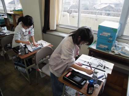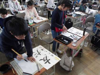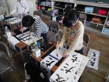 新しい年が始まって最初の授業ということで、書き初めをしました。