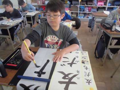 今日は書き初めの清書です。一文字一文字、丁寧に書きました。