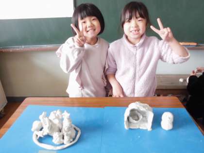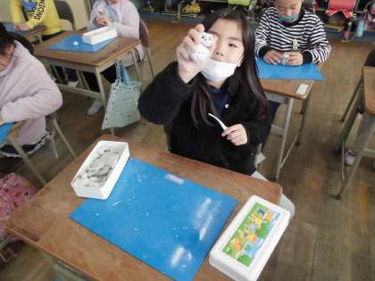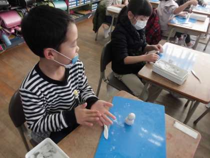 図工では、「冬」をテーマとして、ねん土で表現しました。