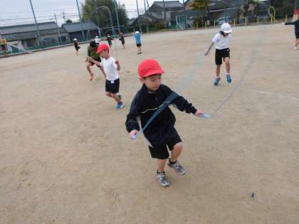 1年生にとって、あや跳びや交差跳びは、初めての子もたくさんいます。