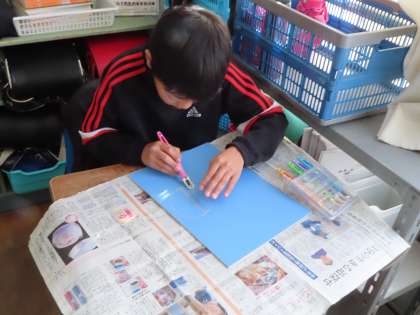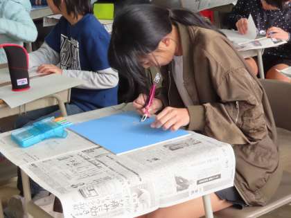 彫刻刀でケガをしないように、真剣な表情で彫り進めていました。