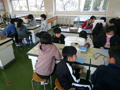 今日は空ぬいと上糸をかける練習をしました。空ぬいは、みんな上手にできました。